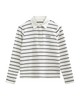 CMMUSE-POLO is a long-sleeved polo shirt in a premium material with yarn dyed stripes, small side slits, a small logo print on the chest and a classic polo collar with a concealed front button fastening.