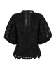 Cmlanly-blouse is een blouse in een premium materiaal met allover kant en voering, volumineuze ballonmouwen, verborgen zip-zip-bevestiging en een vorm passende vorm.