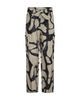 Cmnatu-Pant is een paar hoge taille-broek in een licht materiaal met een afdruk, knop en ritssluiting, tie-string door de taille, zijzakken op de benen en plooien aan de voorkant die de losse pasvorm accentueren.
