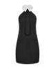Cmtiedy-jurk is een jurk in een premium, gestreept materiaal met een slanke pasvorm, een verborgen rugzip-bevestiging, voorzakken en een halterneck met een kraag en stropdas.