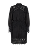 Cmultra-jurk is een jurk in een premium materiaal met elegante kanten details, een verborgen knoopbevestiging, lange ballonmouwen en een elastische tailleband die de casual pasvorm accentueert.