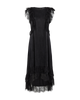 Cmmarta-jurk is een lange jurk in een premium cupro-materiaal met ruches met franjesheidslippen. De jurk is korter aan de voorkant met een verborgen achterste ritssluiting, een afgeronde halslijn en een brede rok.