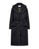 CMBICCO-COAT is een donsjas met een riem bij de taille, knoopbevestiging, een diepe V-hals, revers, een spleet aan de achterkant en zakken aan de voorkant.