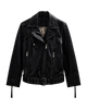 Cmroyal-Stud-Jacket is een klassiek motorjack in een premium materiaal van 100% lambskilet met kleine studs, bedrukte voering en reliëf logo-details in de nek en aan de achterkant. De jas heeft ook een ritssluiting aan de voorkant en in de zakken en de lange mouwen en een verwijderbare riem aan de onderkant.