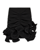 Cmellie-skirt is een korte rok in een premium materiaal met een strakke pasvorm, verborgen zip-zip-bevestiging, voor- en achterkant-verzameleffect en grote geplooide ruches aan de onderkant die een verfijnde, asymmetrische look toevoegen.