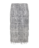 CMultoia-skirt is een lange kokerrok in een premium gaasmateriaal verfraaid met pailletten, die een elegant franje effect aan de onderkant toevoegt. Bovendien heeft de rok een volledige voering en een verborgen haak-en-oog- en ritssluiting aan de achterkant.