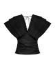 CMPLEAT-top is een top in een premium materiaal met V-hals op de voor- en achterkant, zip-bevestiging, een tie-string door de nek, kalk door de zijkanten en korte mouwen met ruches en fijn pleiten.