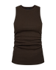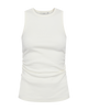 CMSIV-TOP is een nauwsluitende top in een dik en rekbaar materiaal met een geribbelde textuur. De bovenkant heeft een afgeronde halslijn, brede schouderbanden en verzamelde details aan de zijkanten.