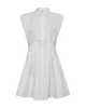 Cmshirley-jurk is een korte shirtjurk in een premium poplin-materiaal met een verborgen knoopbevestiging, zijzakken, licht gevoerde schouders en voor- en achterste plooien die de taille en de losse rok benadrukken.