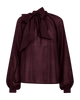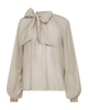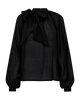 Cmtilly-blouse is een blouse in een exclusieve kwaliteit met een extravagant, verwijderbare boogdetail op de hoge kraag, geplooide details, een spleet met stofknoppen op de achterkant en lange raglanmouwen met een volumineus balloneffect en knoopsluiting.